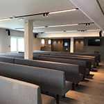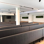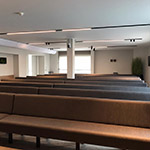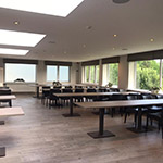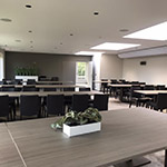 Nous disposons d’une part d’une salle de cérémonie spacieuse pour les cérémonies, équipée de toutes les techniques modernes (projection, éclairage contrôlé, live stream, …) et d’autre part, d’une salle de réception avec une vue idyllique et paisible sur une réserve naturelle.